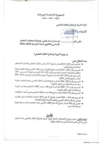 أعلنت وزارة وإصلاح نظام التعليم جدول الامتحانات والعطل المدرسية والمسابقات الوطنية للعام الدراسي، 2025/2026.