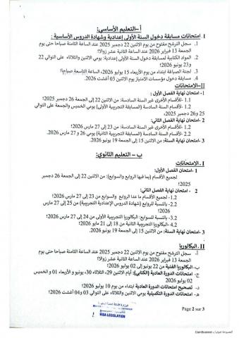 وعجّلت الوزارة مواعيد الامتحانات والمسابقات الوطنية، للعام الدراسي الحالي لتكون في شهر يونيو، بدل شهر يوليو 2026.