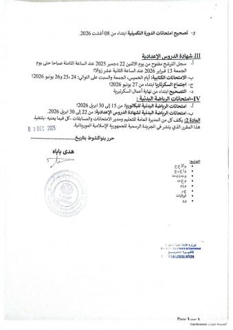أما مسابقة الامتياز و الدورة التكميلية فستجريان يوم 3 أغسطس، بينما حدد تاريخ 15 يوليو 2026 موعدا لاجتماع لجنة صياغة نتائج شهادة ختم الدروس الأساسية، و 10 يوليو لبدء تصحيح الباكلوريا.