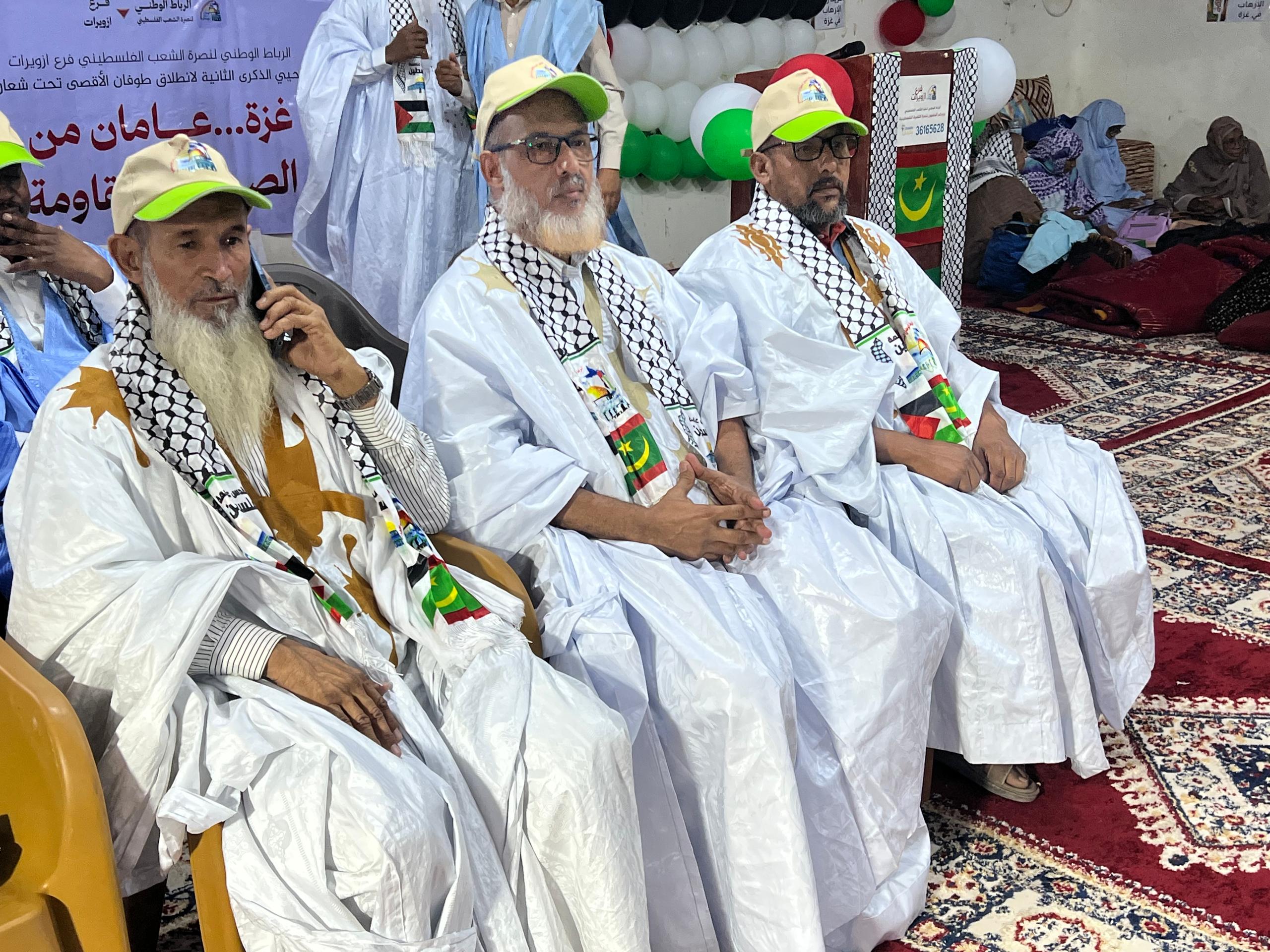 نظم الرباط الوطني لنصرة الشعب الفلسطيني، فرع ازويرات، أمسية إحتفالية إحياء للذكرى الثانية للسابع من أكتوبر وانطلاق عملية طوفان الأقصى، حيث إحتضنت قاعة النخيل لمدينة ازويرات فعاليات الأمسية الإحتفالية.
