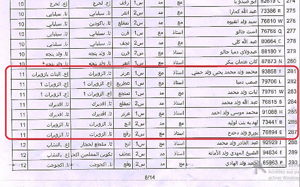 بموجب مذكرة عمل صادرة عن وزارة التهذيب الوطني اليوم تمت ترقية مجموعة من أساتذة التعليم الثانوي في كل من ازويرات وافديرك.
