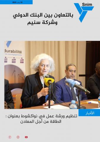 انطلقت، اليوم الثلاثاء 18 نوفمبر 2025م ، بفندق شيراتون في نواكشوط ورشة عمل، تدوم يومين، منظمة من طرف البنك الدولي و الشركة الوطنية للصناعة والمناجم اسنيم ، بعنوان : الطاقة من أجل المعادن.
