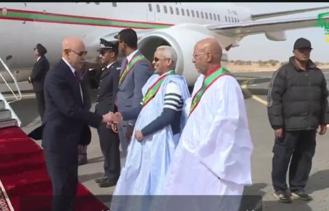 وصل رئيس الجمهورية محمد ولد الشيخ الغزواني هذه اللحظات إلى مدينة ازويرات وكان في إستقباله عند مدرج الطائرة والي تيرس زمور الطيب ولد محمد محمود ور:يس جهة تيرس زمور الحضرامي ولد احمادي ونائبي ازويرات، حمود ولد المالحه ولد إدوم ولد حكي.