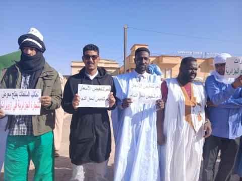 نظم سكان مدينة ازويرات، صباح اليوم الثلاثاء 17 فبراير 2026م وقفة إحتجاجية أمام مباني ولاية تيرس، للمطالبة بتخفيض الأسعار والحد من المضاربات في السوق.