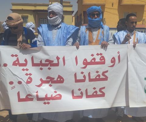 نظم عمال سوق الهواتف بمدينة ازويرات، صباح اليوم الخميس 12 مارس 2026 م وقفة إحتجاجية أمام مباني ولاية تيرس، زمور، وتأتي هذه الوقفة في إطار سلسلة الإحتجاجات التي ينظمها عمال سوق الهواتف على عموم التراب الوطني.