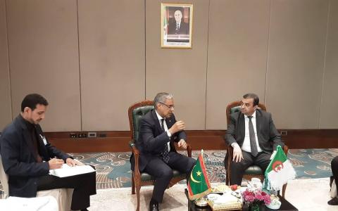 ناقش وزير النفط والطاقة الموريتاني، محمد ولد خالد، اليوم الاثنين، مع وزير الدولة الجزائري المكلف بالمحروقات والمناجم، محمد عرقاب، سبل تعزيز التعاون بين موريتانيا والجزائر في مجالات المحروقات والمعادن.