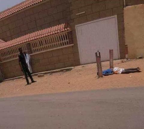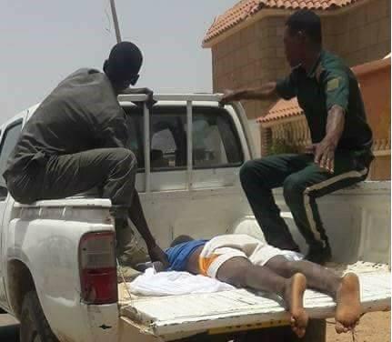 الصورة من مدينة ازويرات اليوم حيث تعرض هذا المواطن لعملية دهس بسيارة على طريق المطار و بعد طول انتظار وصول وكيل الجمهورية من اجل معاينة مكان الحادث ليتم نقل الجثة في مؤخرة سيارة هيلكس بطريقة بشعة و كأننا في مدينة لاتوجد بها سيارات اسعاف”.
